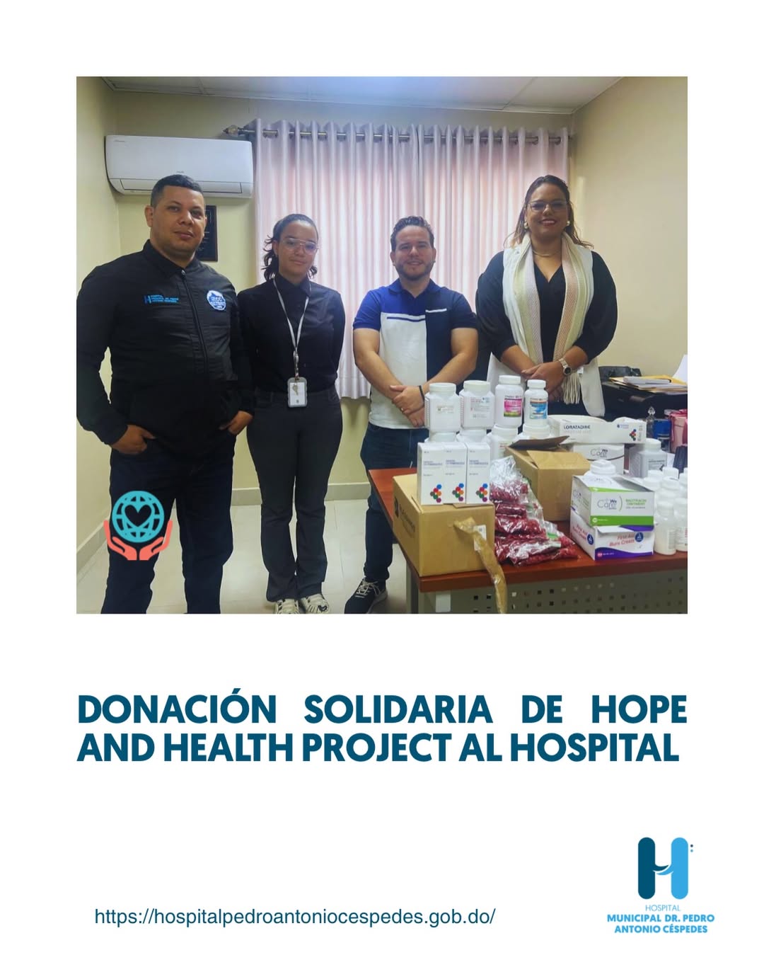 El Hospital Municipal expresa su más sincero y profundo agradecimiento a Hope and Health Project por la significativa donación realizada a nuestro centro de salud. Este valioso aporte representa un apoyo fundamental para el fortalecimiento de los servicios que ofrecemos diariamente a la población, permitiéndonos continuar brindando una atención más oportuna, humana y de mayor calidad a cada paciente que acude a nuestras instalaciones.